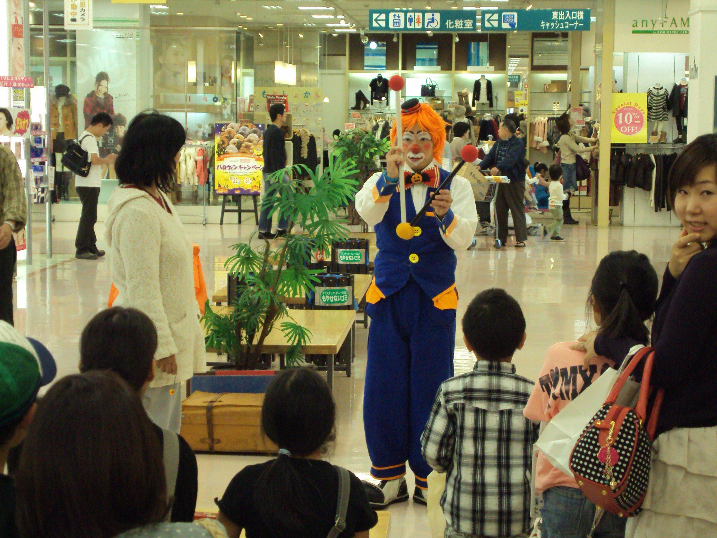 Also, my mother and sister and I went to this huge department store, where a clown performed. He was pretty ridiculous, and I felt a little strange sitting there, a 22yo white man, among a throng of excited Japanese children. Of course, being a 22yo white man, I was chosen as a volunteer for a plate-spinning demonstration, much to the delight of my mother and sister. I actually did not make a fool of myself, and I was awarded with a huge balloon flower afterwards. I felt pretty bad for this little girl who was sitting near me earlier, since she really wanted to be a volunteer (and I really did not), and she was not chosen. I gave her the big flower, and she was really excited, which made me happy. It was halloween the next day, so we bought a cool halloween cake that was shaped like a monster face.
